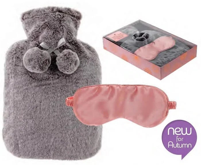 Grijze warmwaterfles van imitatiebont en oogmasker 07AHHWB008