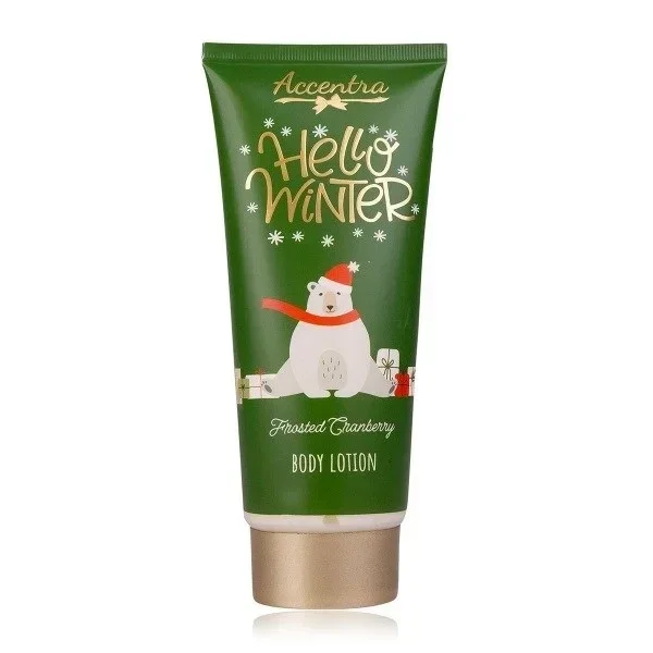 200ml bodylotion HELLO WINTER in tube, geur: Frosted Cranberry, kleur crème/rood/groen